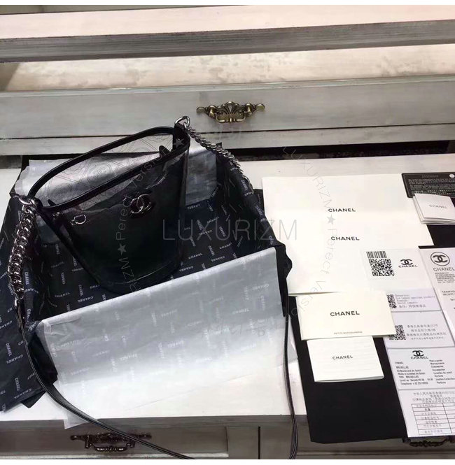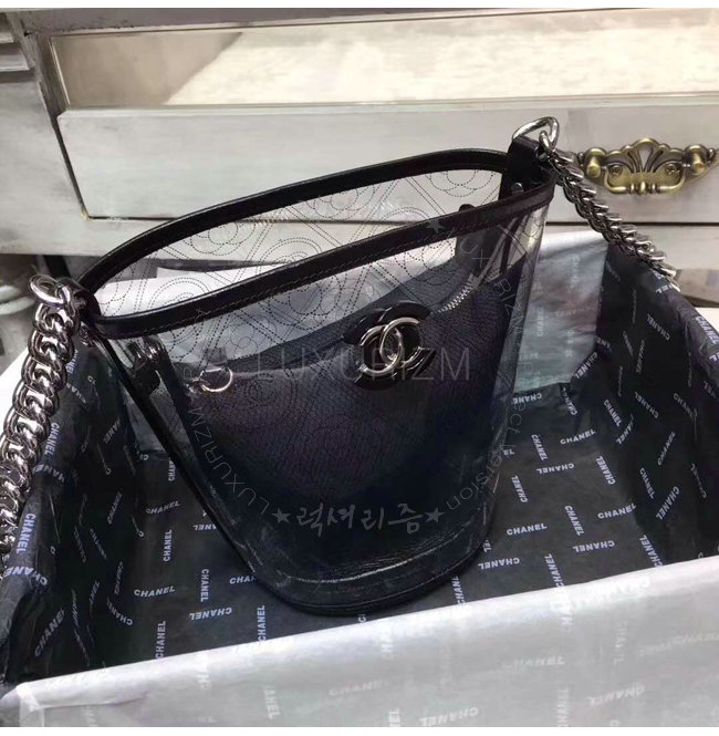 [스페셜오더]CHANEL-A57636 샤넬 PVC 크럼플드 카프스킨 레진 실버 메탈 블랙 버킷백
