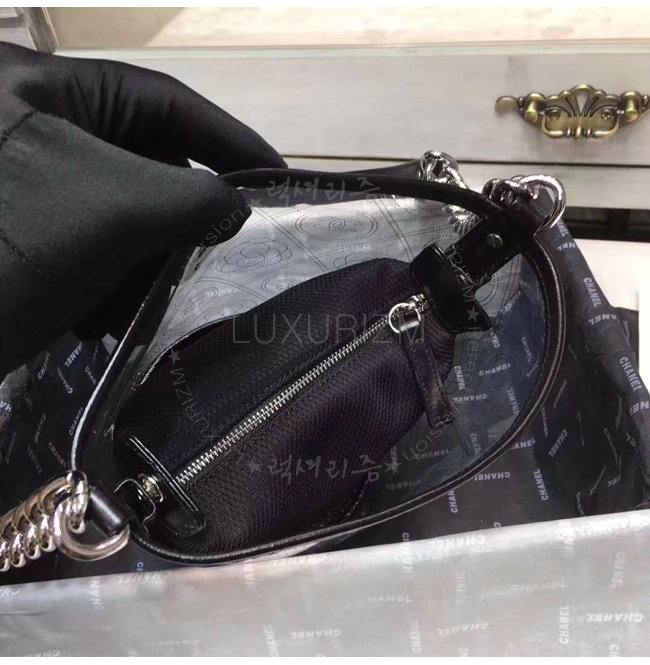 [스페셜오더]CHANEL-A57636 샤넬 크럼플드 카프스킨 레진 실버 메탈 블랙 버킷백 가격 : 480,000원
