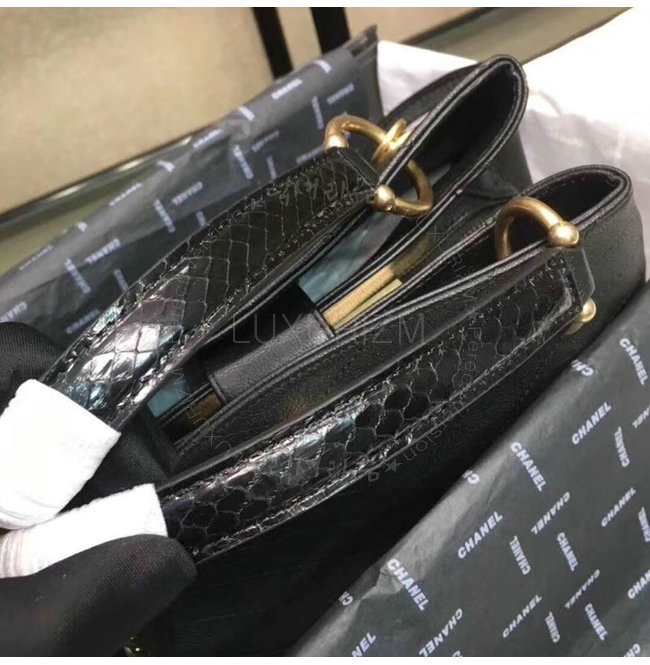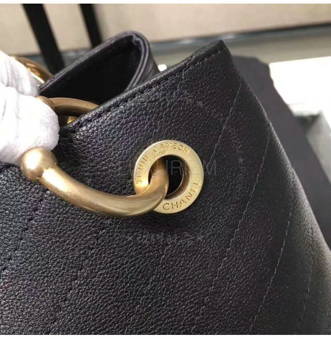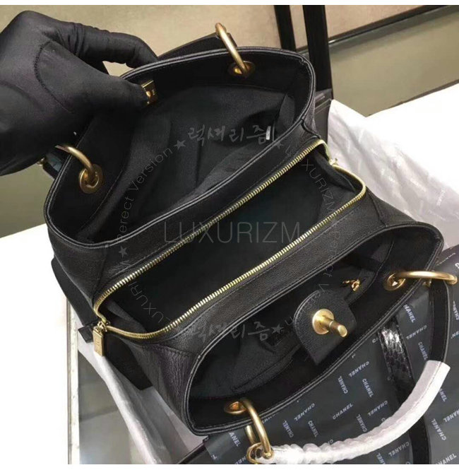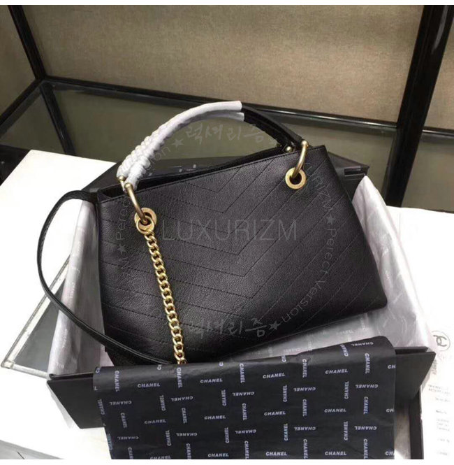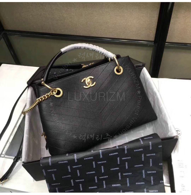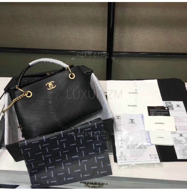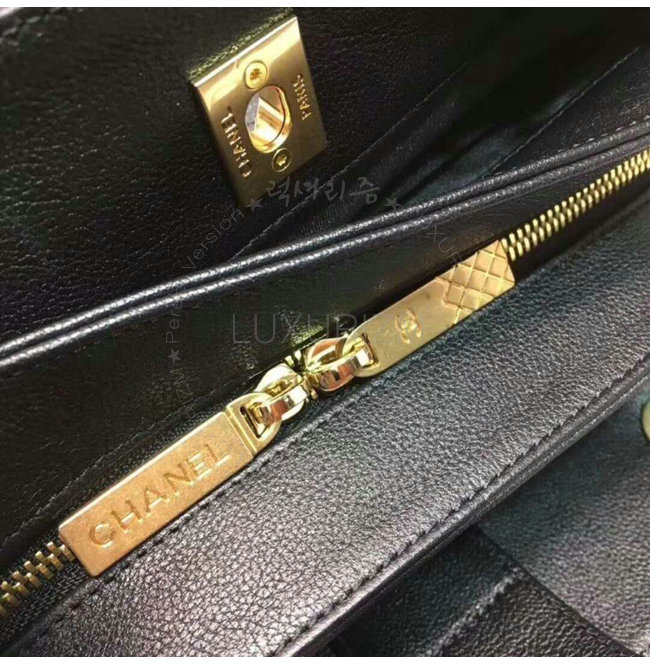 [스페셜오더]CHANEL-A57150 샤넬 그레인드 카프스킨 엘라페 골드 메탈 블랙 스몰 지퍼 쇼핑백