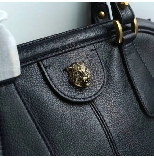 앤틱 골드 톤 메탈 장식 더블 G 메탈 펠린 헤드 두 개의 내부 지퍼 포켓 더블 가죽 핸들 21cm