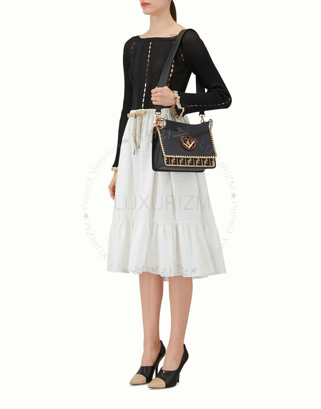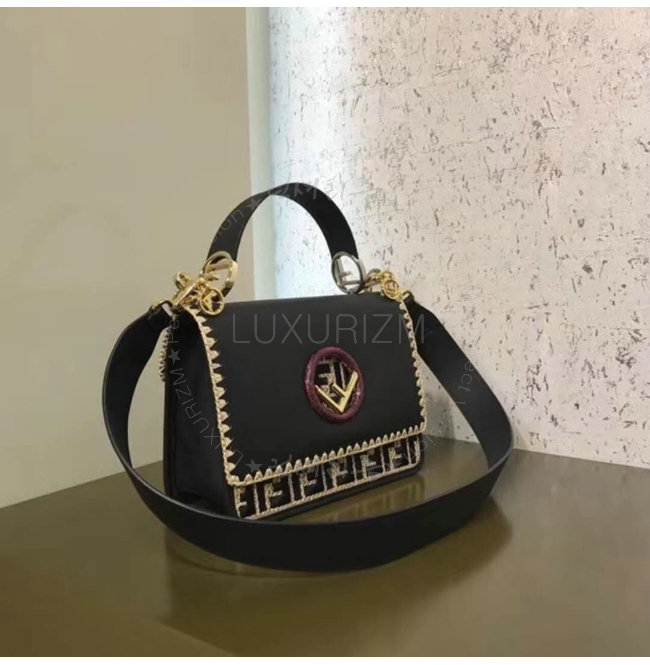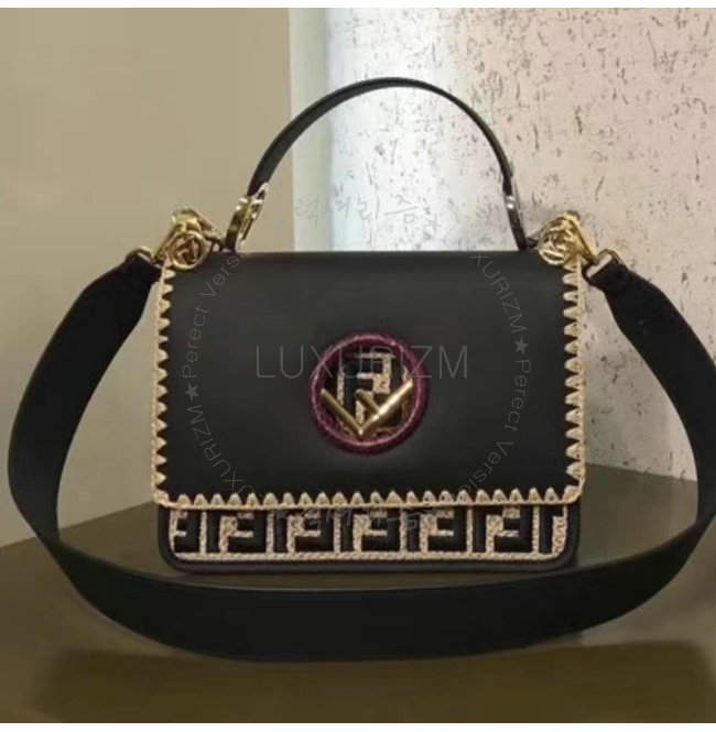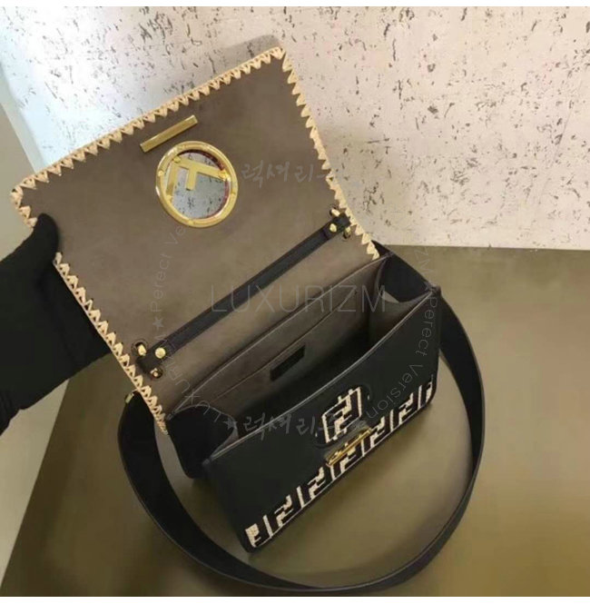 [스페셜오더]FENDI-8BT284 펜디 송아지 가죽 더블 F 패턴 자수 장식 블랙 캔 아이 에프
