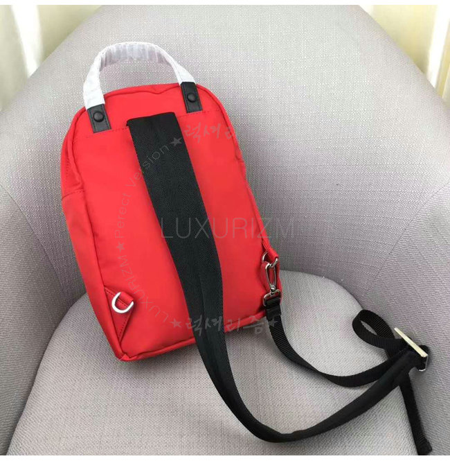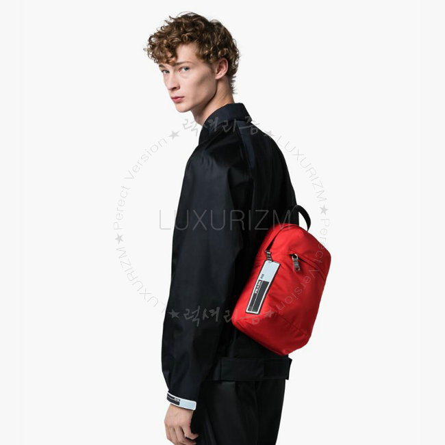 [스페셜오더]PRADA-2VZ023 프라다 나일론 페브릭 외부 고무 로고 레드 원숄더 백팩