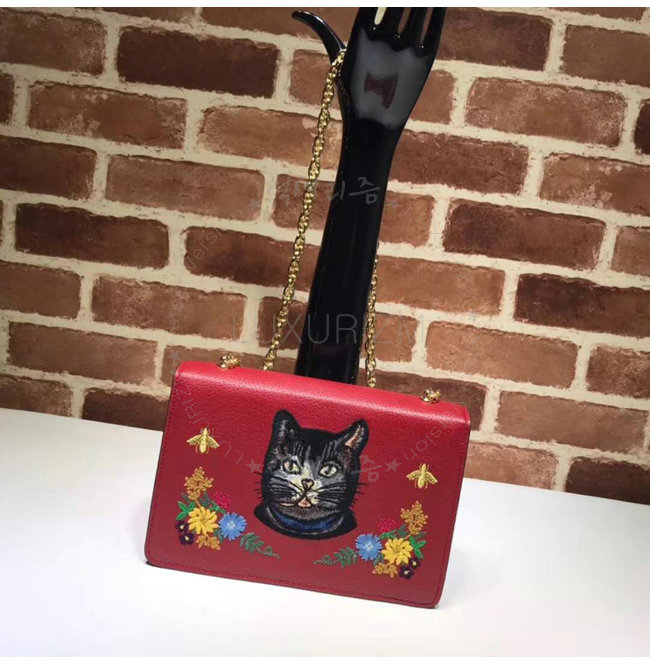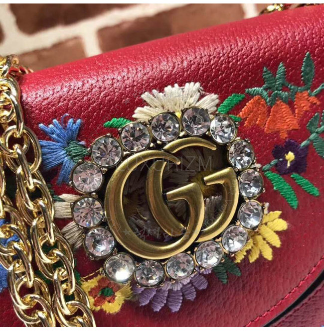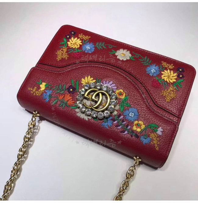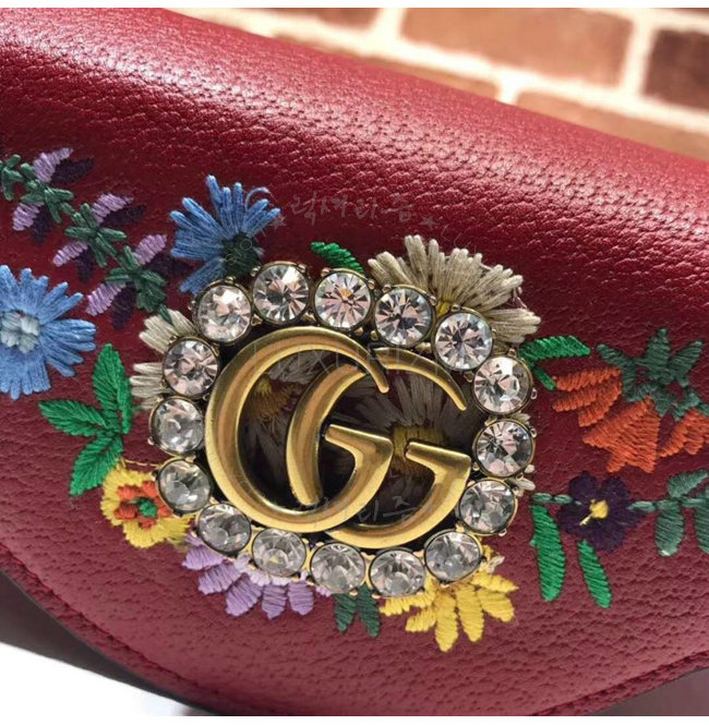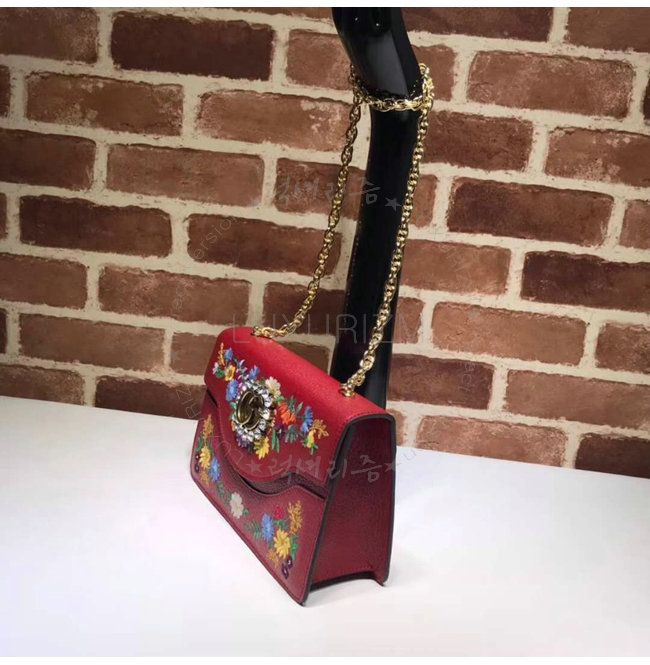 [스페셜오더]GUCCI-499617 8286 구찌 레드 가죽 플라워 자수 스몰 숄더 백