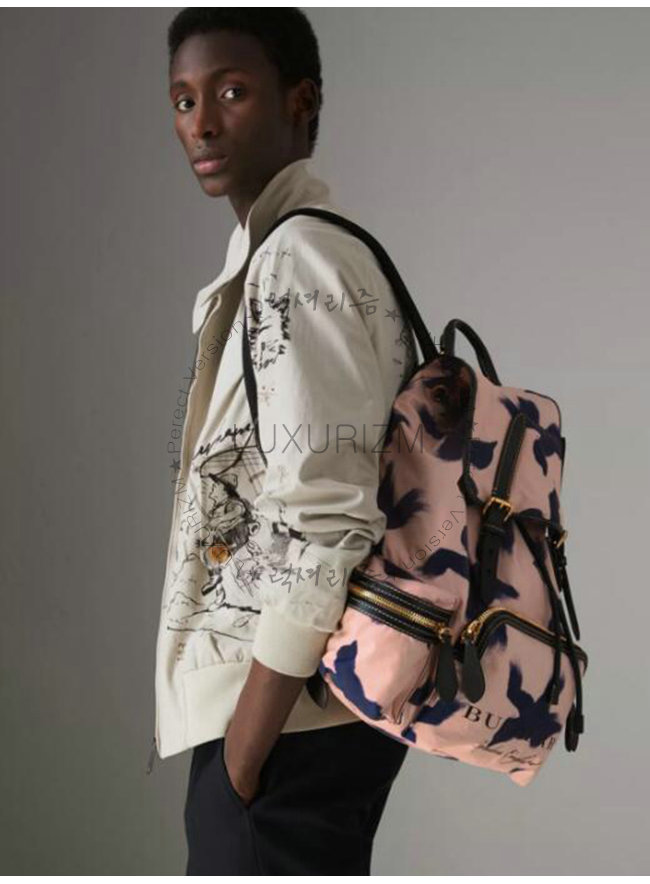 [스페셜오더]BURBERRY-40697331 버버리 라지 버드 프린트 캔버스 가죽 럭색