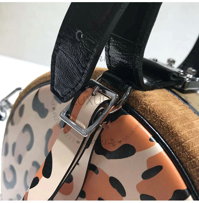 프린트 양가죽 내피 실버마감 금속디테일 길이 조절형 상단 가죽 손잡이 1개 탈착가능한 길이