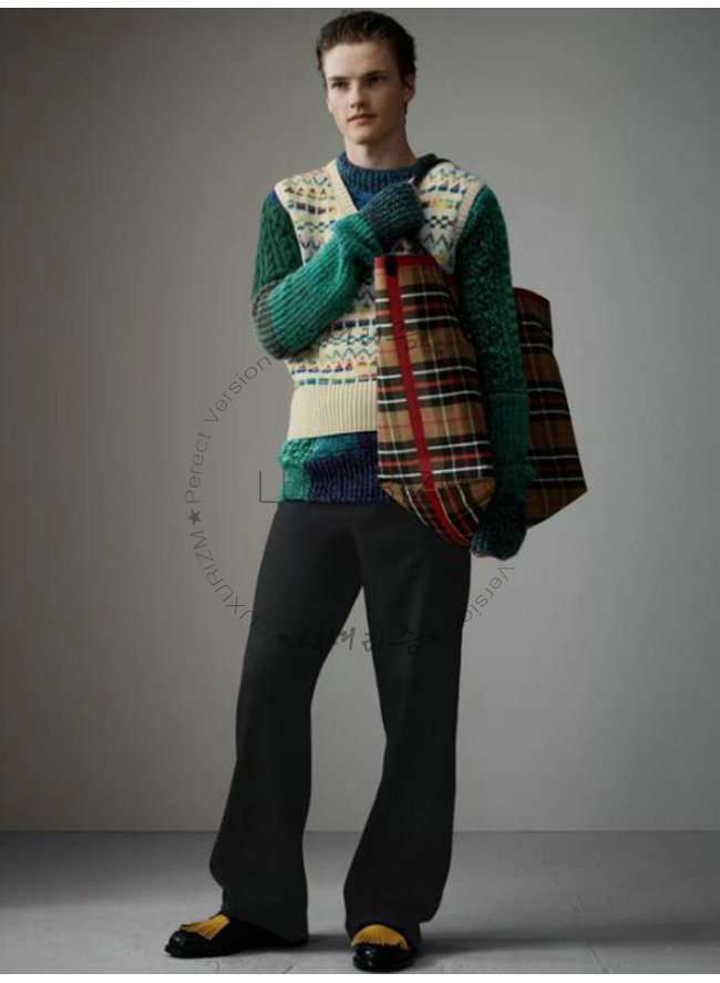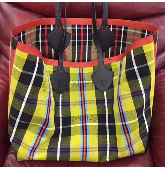 [스페셜오더]BURBERRY-40700531 버버리 자이언트 타탄 코튼 앤티크 옐로 라지 리버시블 토트 백