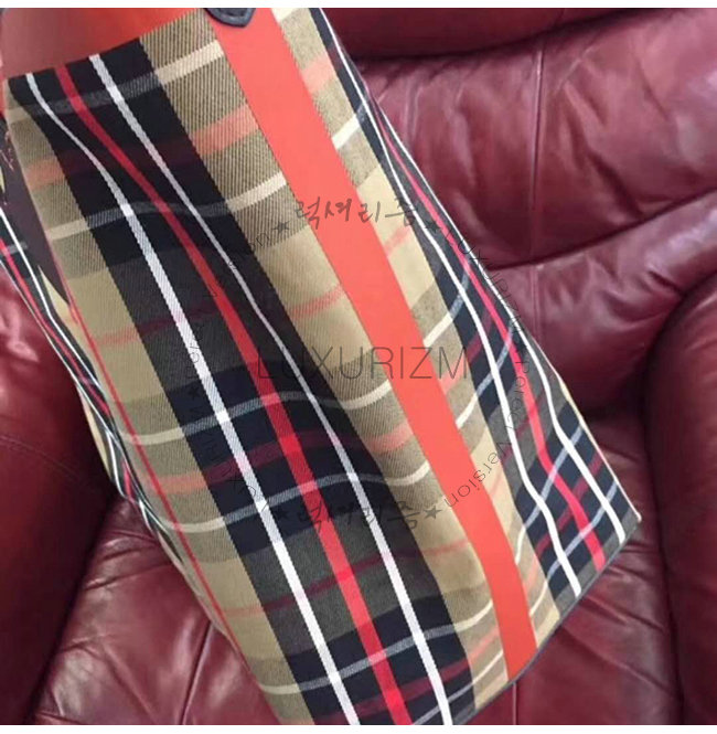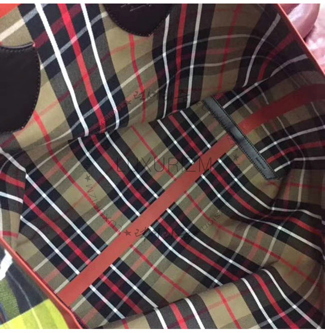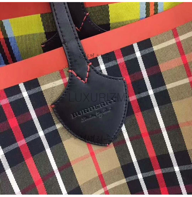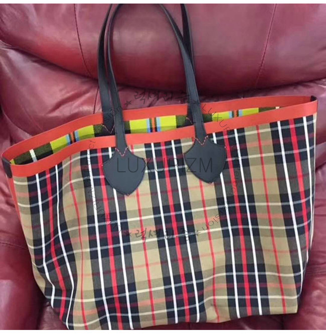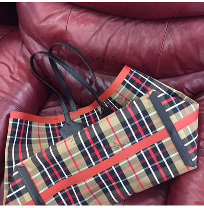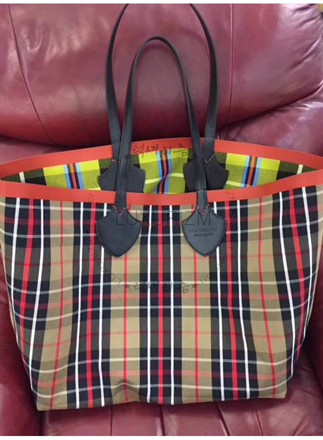 [스페셜오더]BURBERRY-40700531 버버리 자이언트 타탄 코튼 바이브런트 레드 블랙 라지 리버시블 토트 백