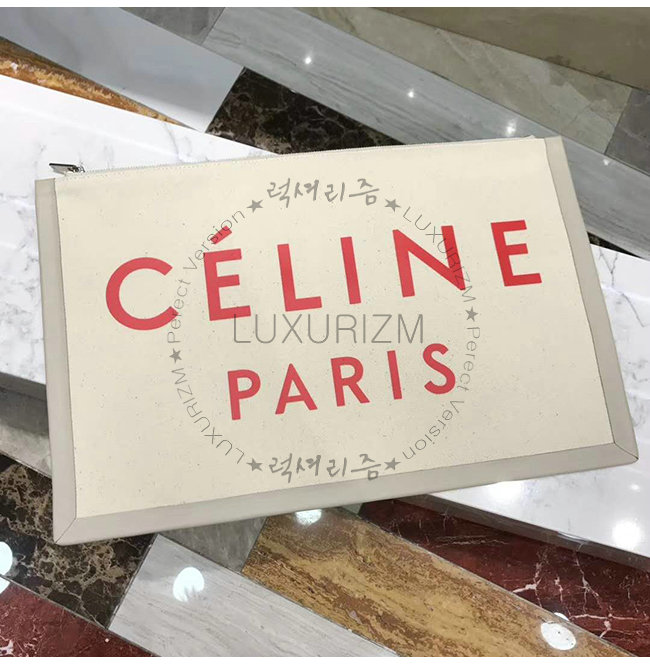 [스페셜오더]CELINE-10A962 셀린느 텍스타일 레드 로고 라지 파우치