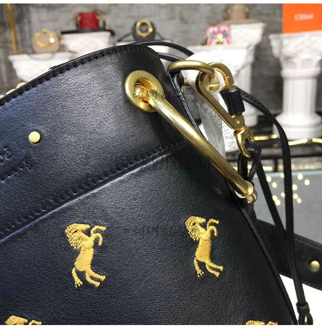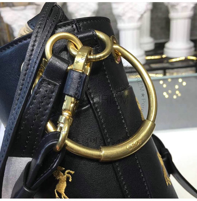 [스페셜오더]Chloe-CHC18AS1 끌로에 카프스킨 little horses 자수 블랙 ROY 미니 버킷 백