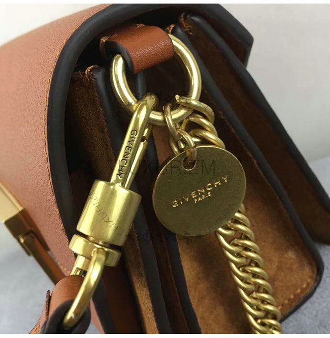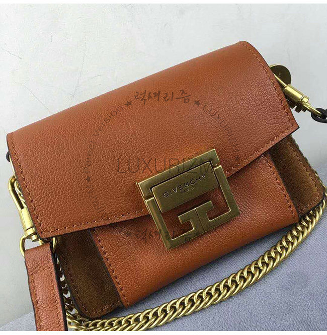 [스페셜오더]GIVENCHY-BB501BB 지방시 카프스킨 체스트넛 GV3 미니 숄더스트랩 플랩 백