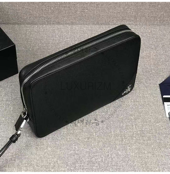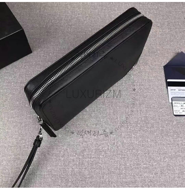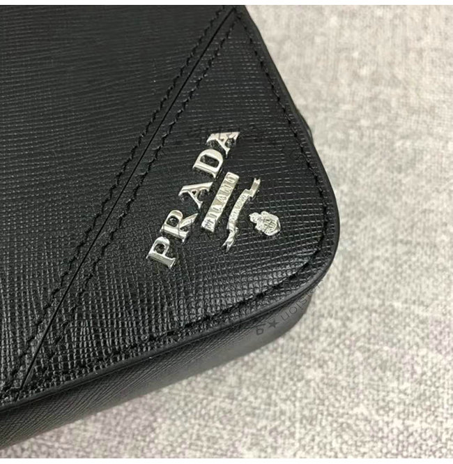 [스페셜오더]PRADA-2VF017 프라다 블랙 사피아노 가죽 메탈 레터링 로고 케이스