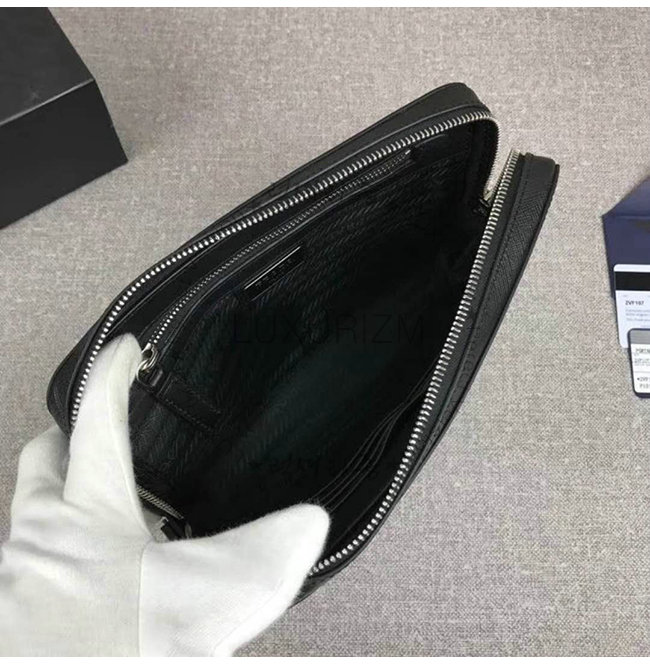 [스페셜오더]PRADA-2VF017 프라다 블랙 사피아노 가죽 트라이앵글 로고 케이스
