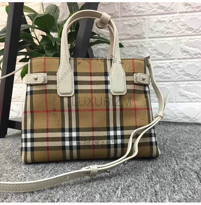 [스페셜오더]BURBERRY-40769491 버버리 스몰 빈티지 체크 화이트 가죽 배너