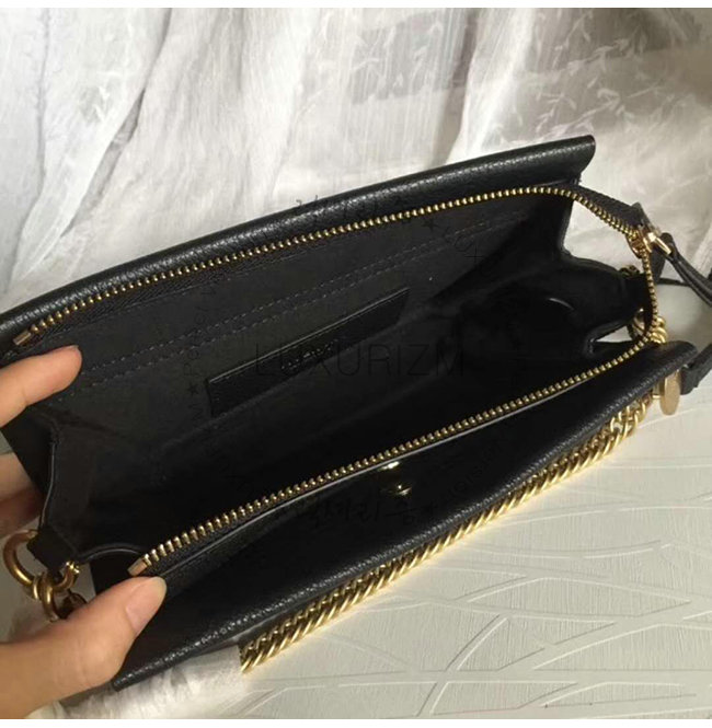 프론트에 골동품 골드 마감 금속 체인. 크로스 바디, 클러치로 사용하거나 어깨에 걸쳐 사용할
