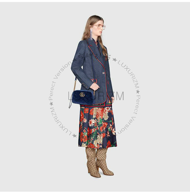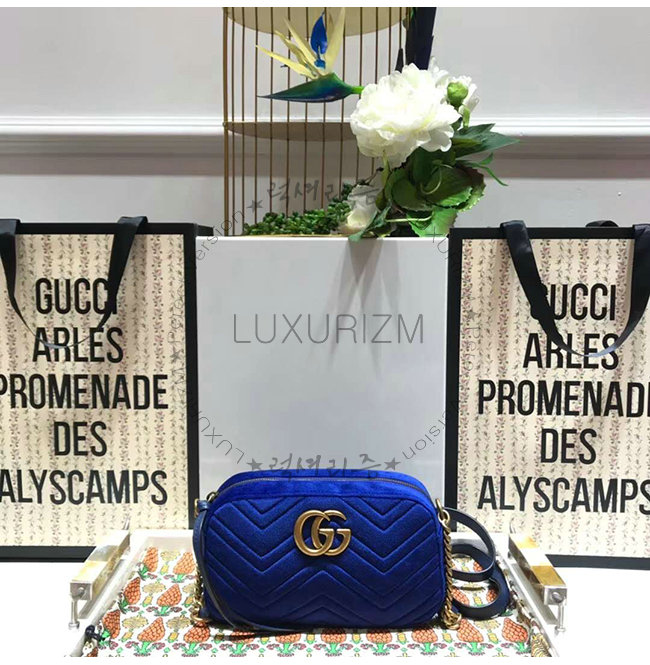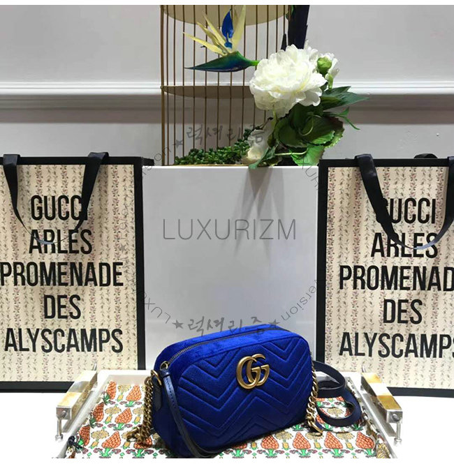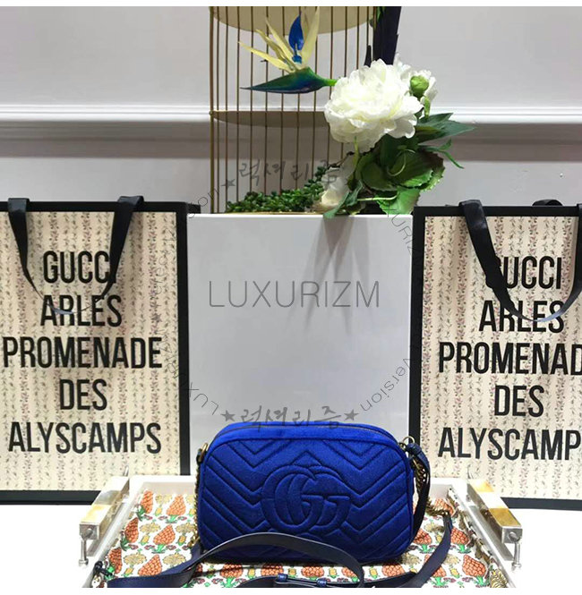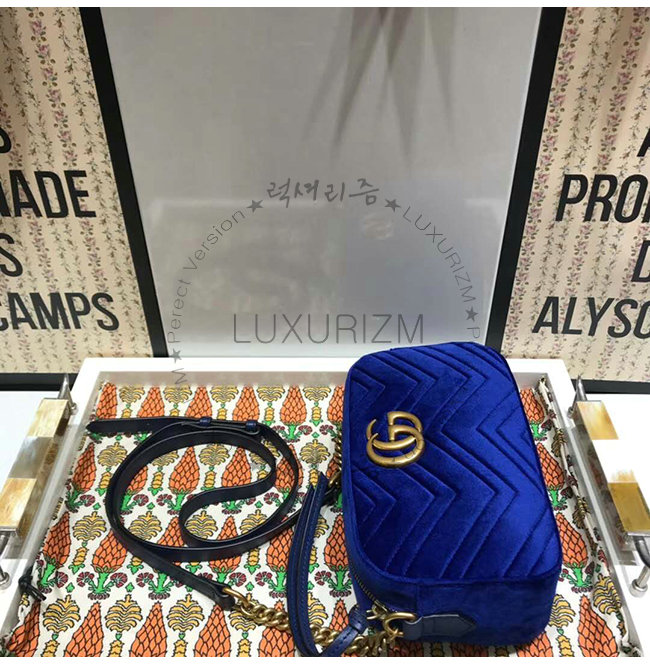 [스페셜오더]GUCCI-447632 4511 구찌 GG Marmont 코발트 블루 벨벳 스몰 숄더 백