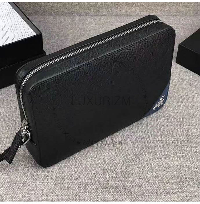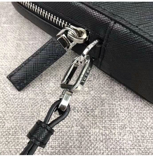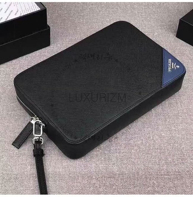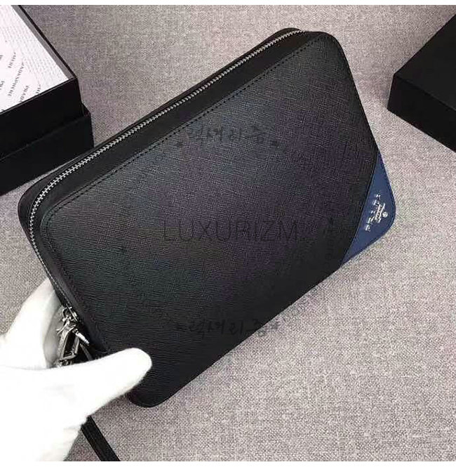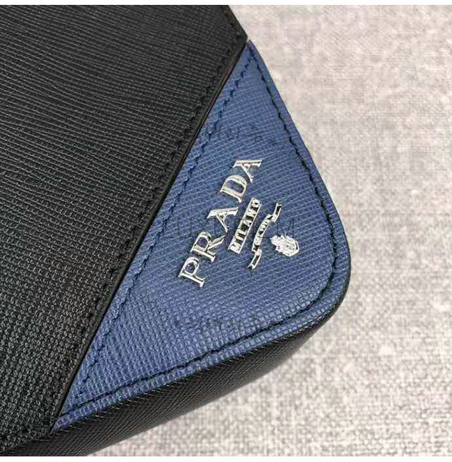[스페셜오더]PRADA-2VF017 프라다 블랙 사피아노 가죽 네이비 디테일 메탈 레터링 로고 케이스