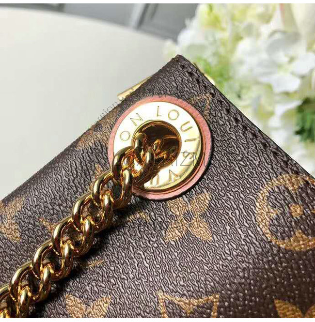 모노그램 캔버스와 결을 살린 송아지 가죽, 골드 마감 슬라이딩 체인이 어우러진