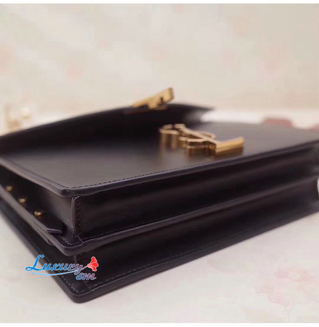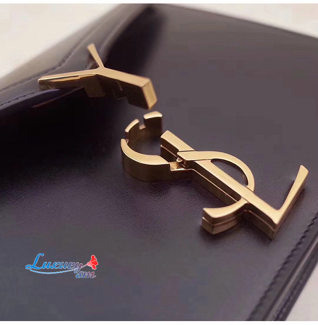 플랩 클로저와 사이드의 스터드, 2개의 수납 공간, YSL 로고 클로저가