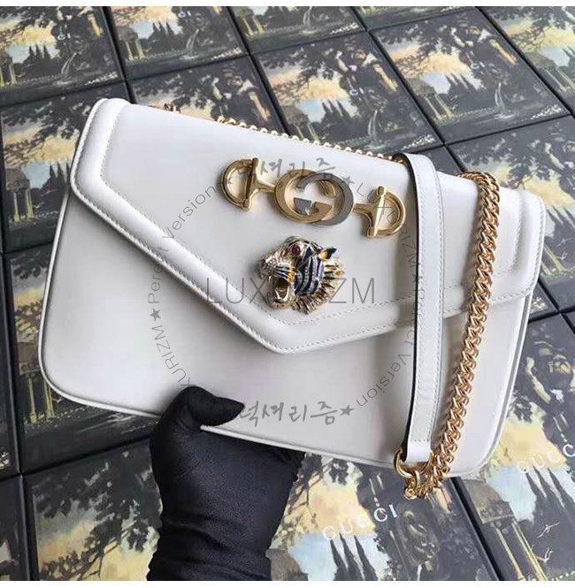 [스페셜오더]GUCCI-537241 9084 구찌 화이트 가죽 타이거 헤드 디테일 미디엄 숄더백