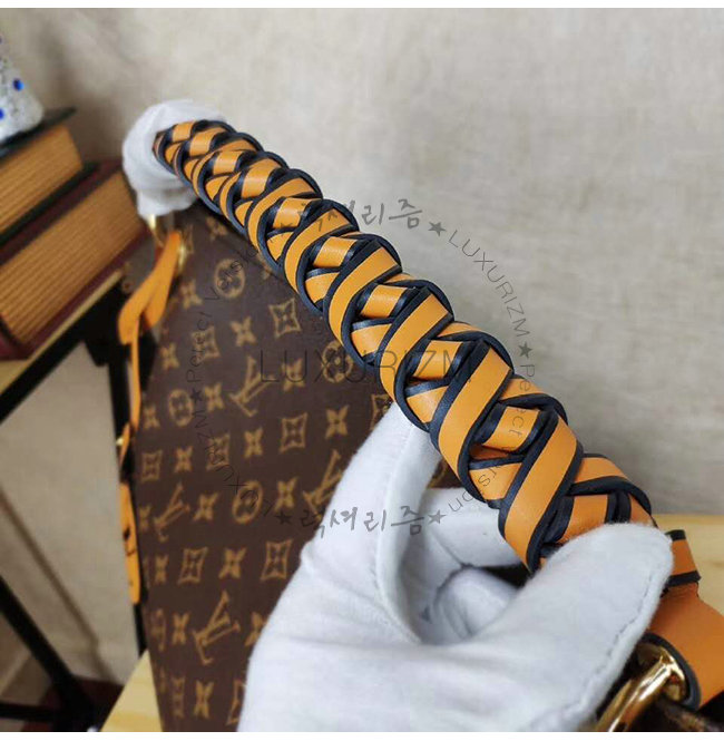 채찍 가죽 마이크로 화이버 라이닝 금색 하드웨어 꼰 탑 핸들 특대 LV