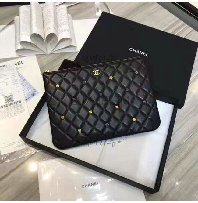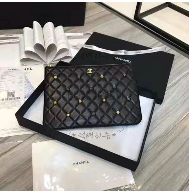[스페셜오더]CHANEL-A81619 샤넬 블랙 램스킨 스터드 장식 골드메탈 케이스