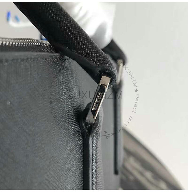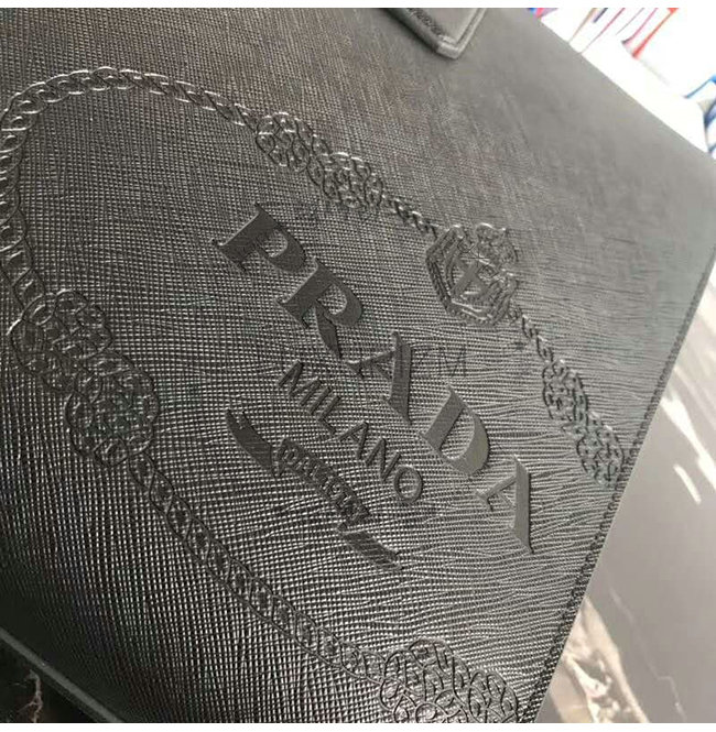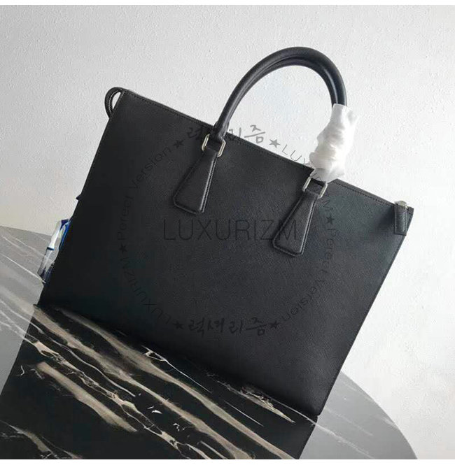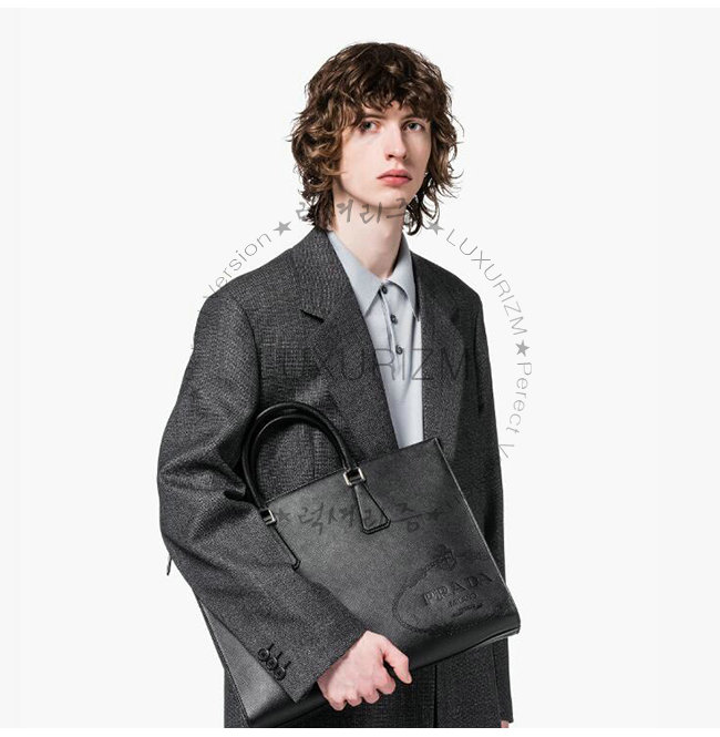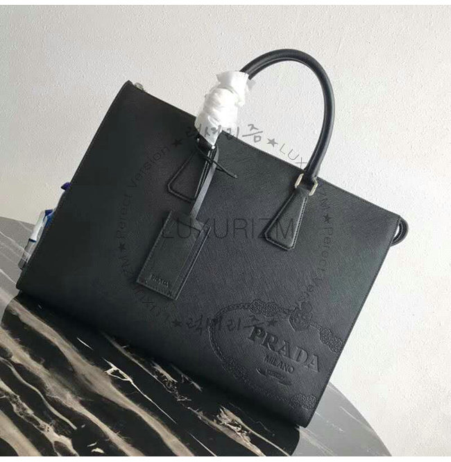 [스페셜오더]PRADA-2VG039 프라다 블랙 사피아노 가죽 블랙 실크스크린 로고 토트백