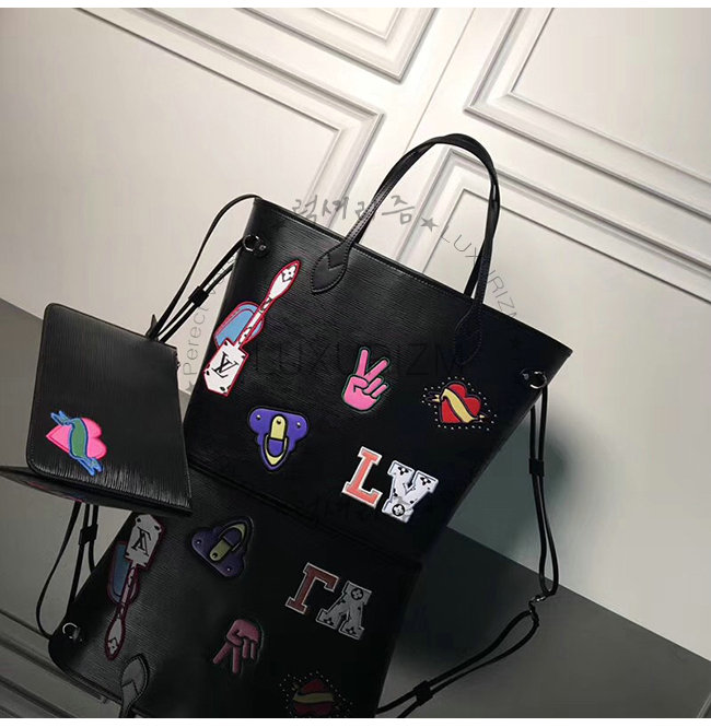 [스페셜오더]LOUIS VUITTON-M52729 루이비통 느와르 에삐 레더 스티커 장식 네버풀 MM