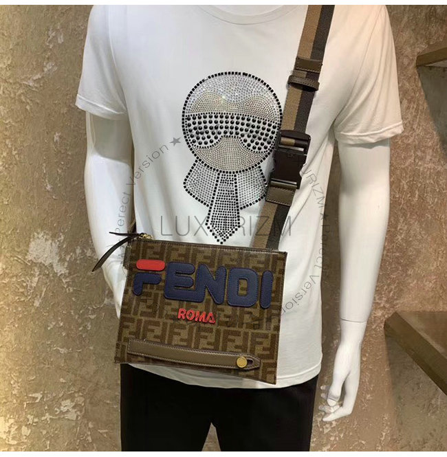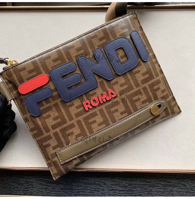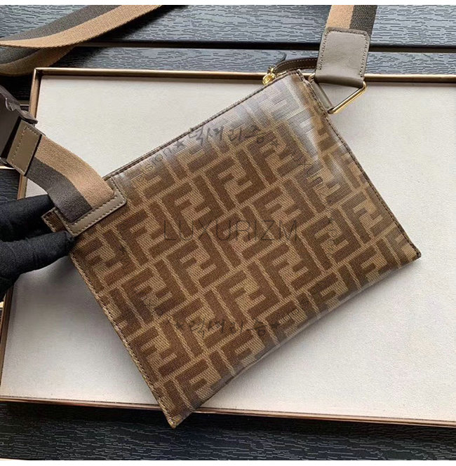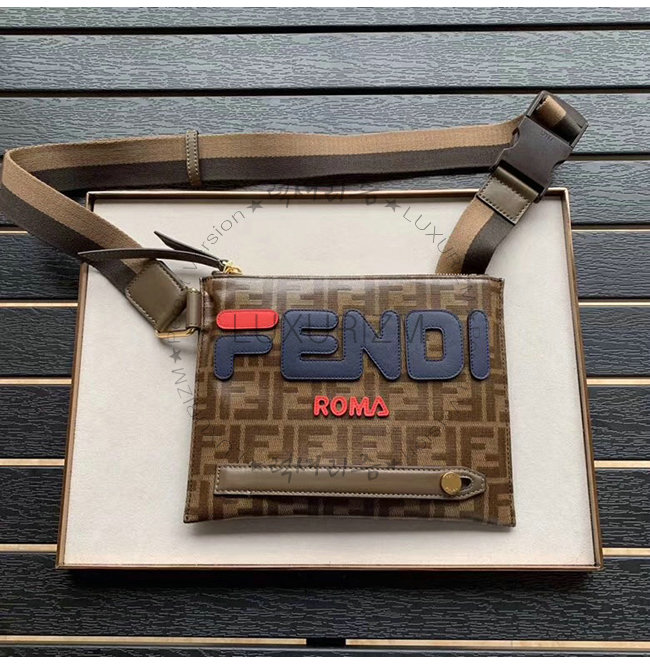 [스페셜오더]FENDI-7VA437 펜디 브라운 FF 페브릭 Fendi Mania 레터링 장식 메신저백