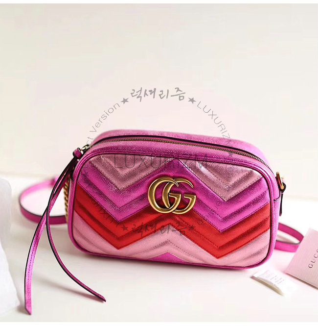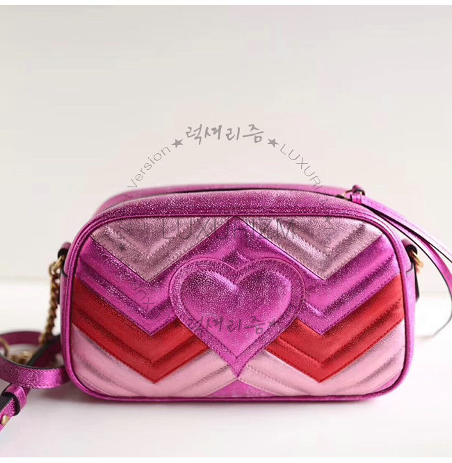 [스페셜오더]GUCCI-447632 5561구찌 GG 마몽 메탈릭 마틀라세 쉐브론 가죽 스몰 숄더백