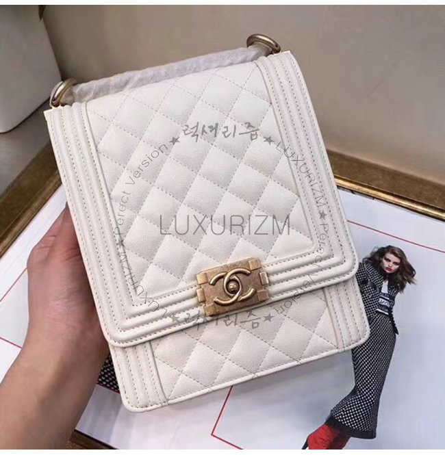 [스페셜오더]CHANEL-AS0130 샤넬 화이트 그레인드 카프스킨 골드메탈 보이 샤넬 플랩백
