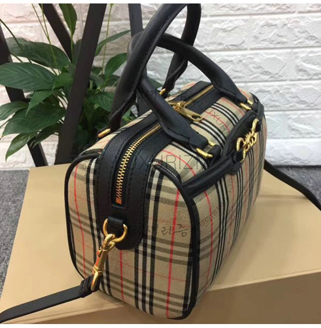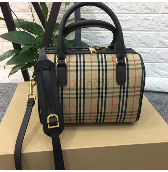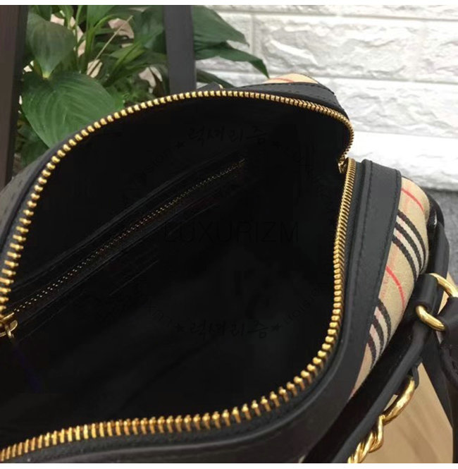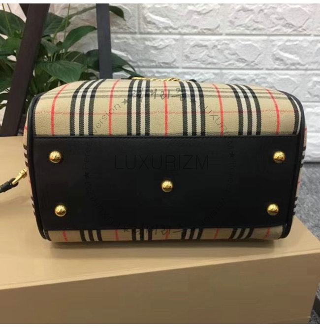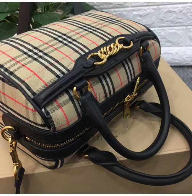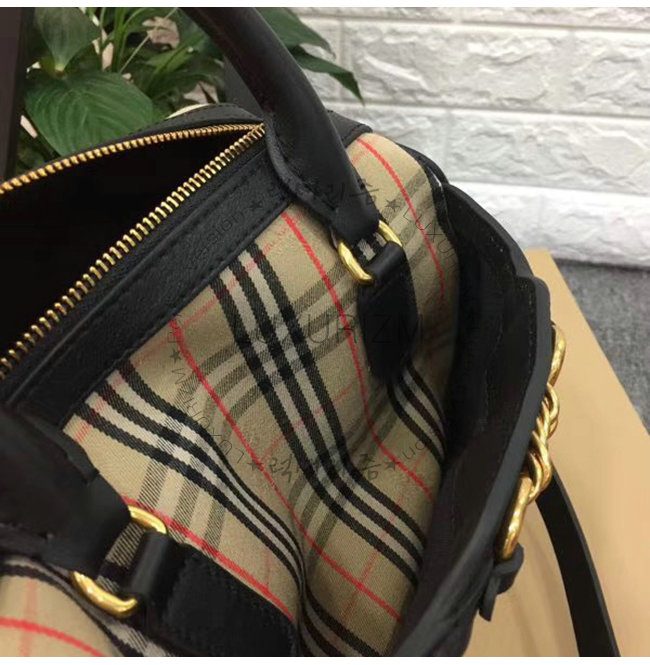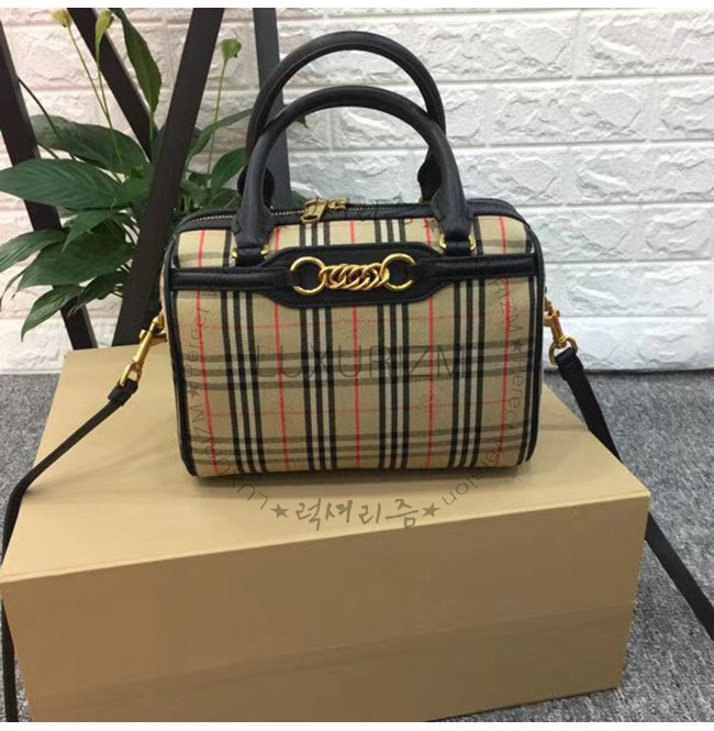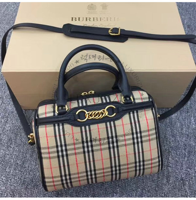 [스페셜오더]BURBERRY-80064431 버버리 스몰 1983 체크 블랙 가죽 볼링백