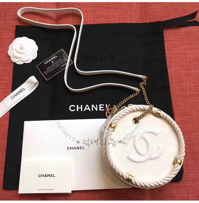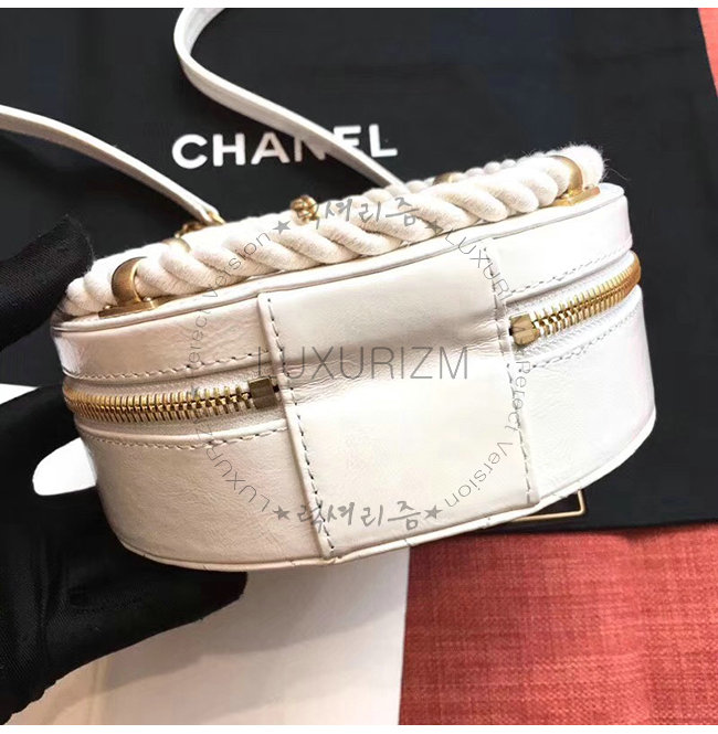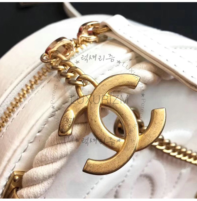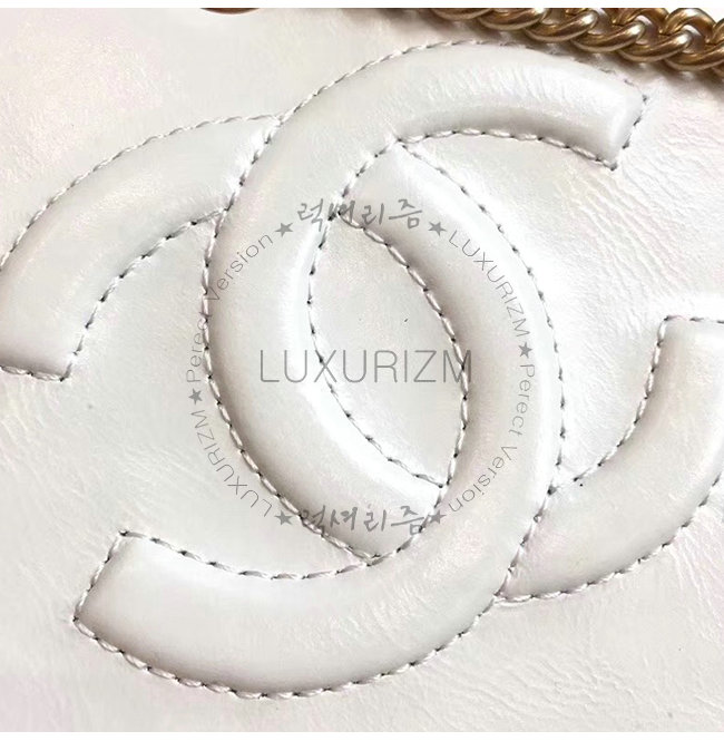 [스페셜오더]CHANEL-AS0075 샤넬 화이트 크럼플드 카프스킨 코튼 골드메탈 스몰 라운드백