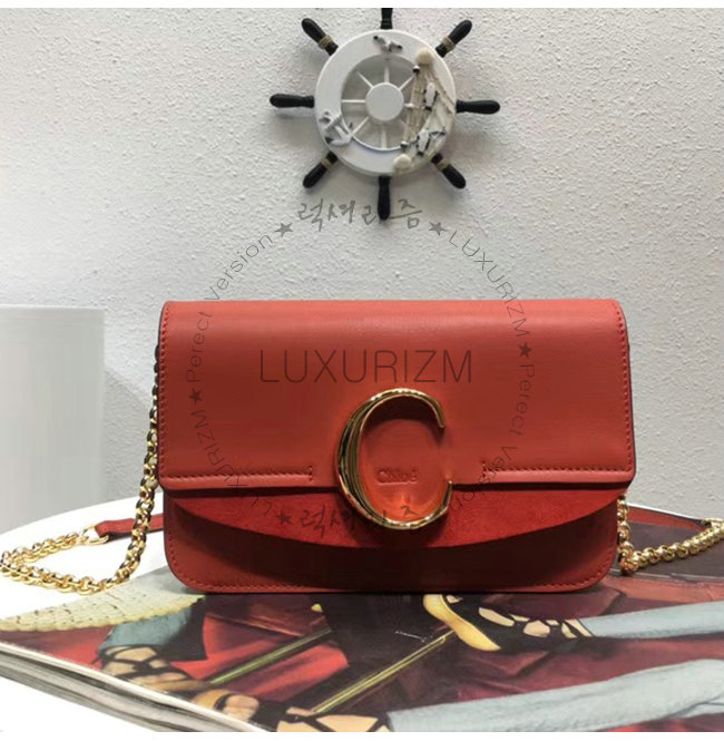 [스페셜오더]Chloe-CHC19SS192 끌로에 레드 카프스킨 끌로에 C 체인 클러치