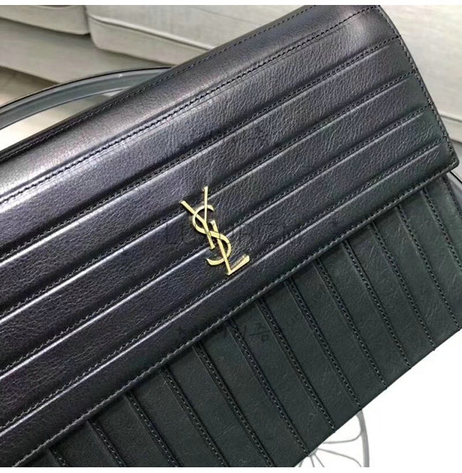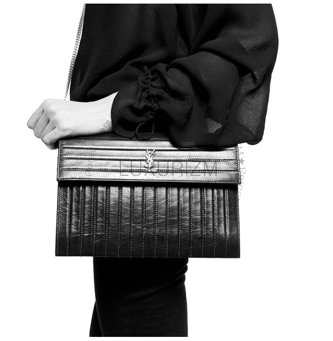 금속 YSL 이니셜로 장식 된 플랩이 달린 클러치 백과 체인이 단단해야합니다.