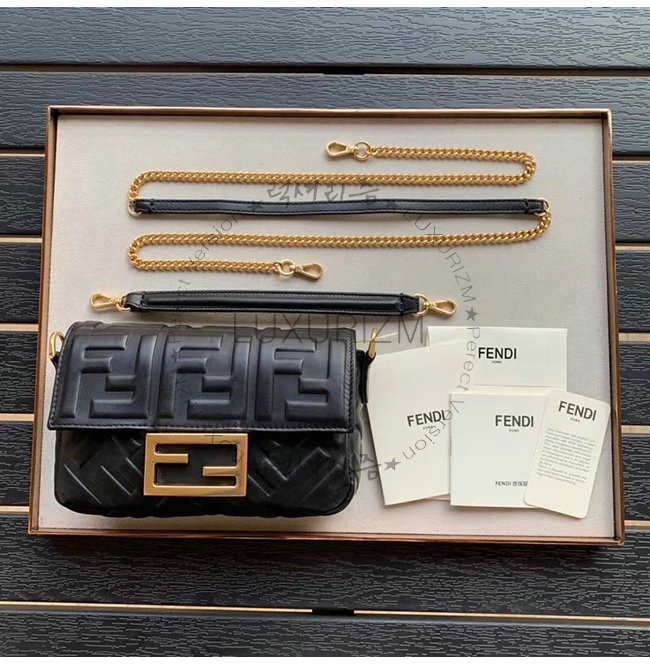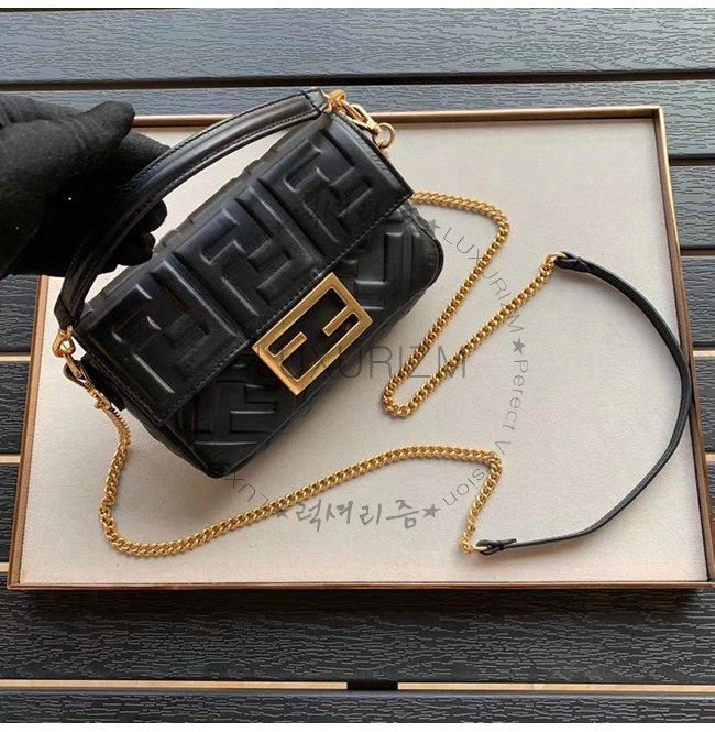 [스페셜오더]FENDI-8BS017 펜디 블랙 FF 모티프 양가죽 미니 바게트백