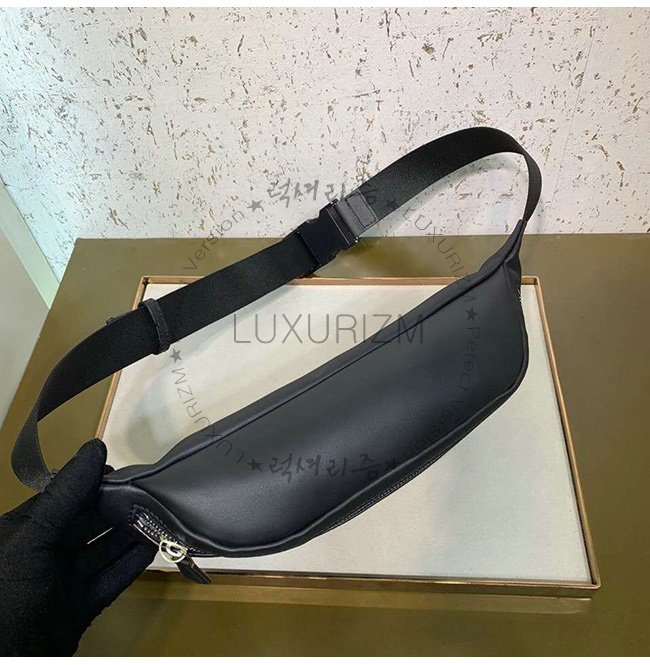 지퍼 잠금식 벨트 백. 길이 조절 가능 벨트. 블랙 컬러의