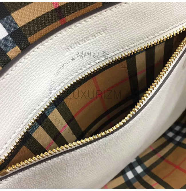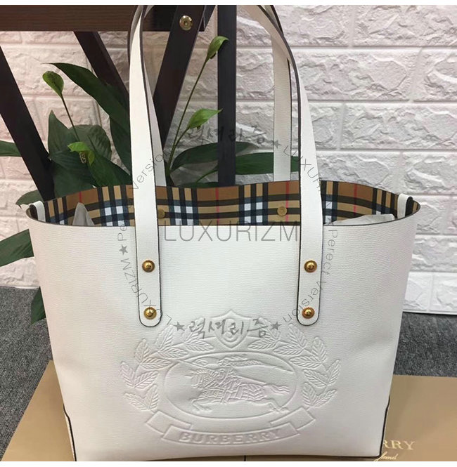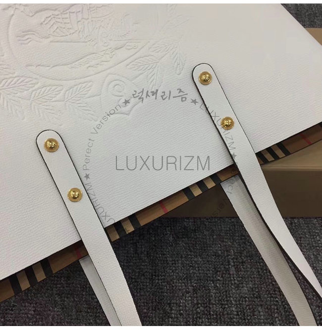 BURBERRY-40801091 버버리 화이트 송아지 가죽 스몰 엠보싱 크레스트 토트