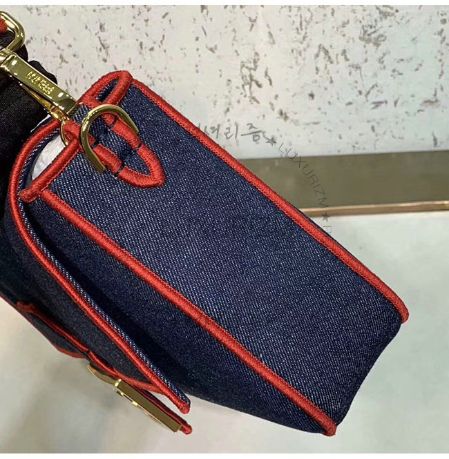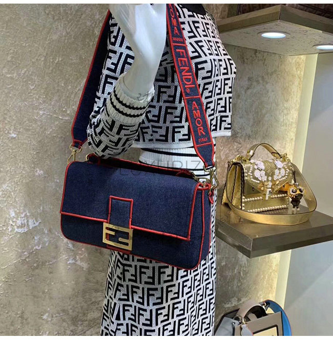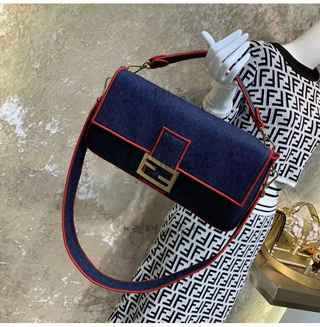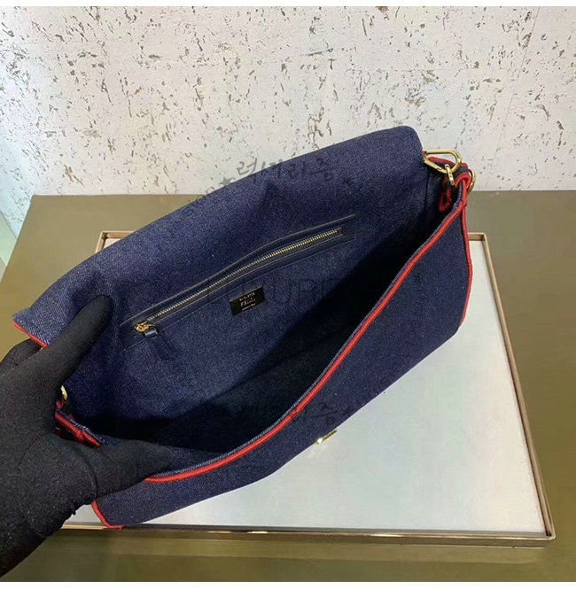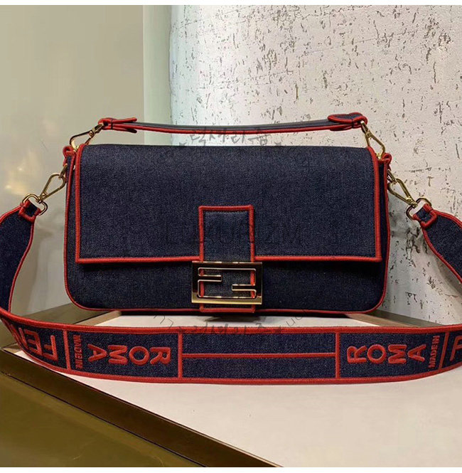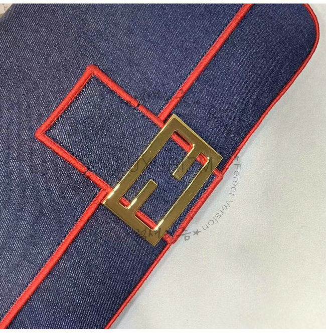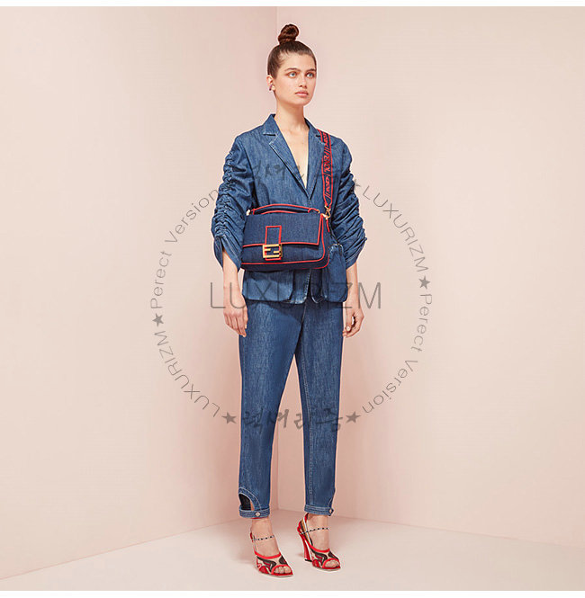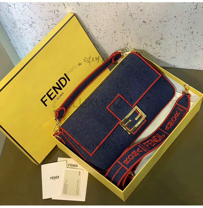 [스페셜오더]FENDI-8BR771 펜디 블루 데님 레드 디테일 라지 바게트백