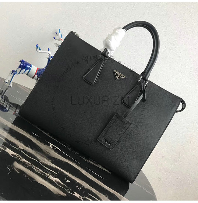 [스페셜오더]PRADA-2VG039 프라다 블랙 사피아노 가죽 트라이앵글 로고 브리프케이스