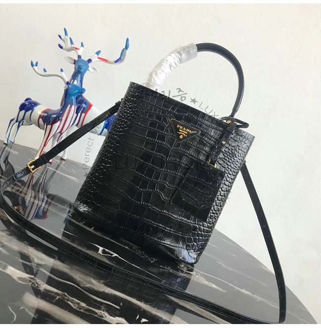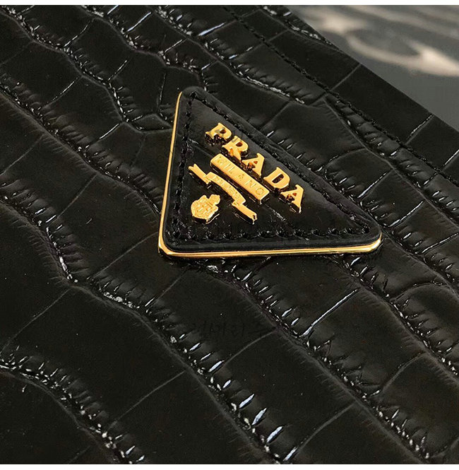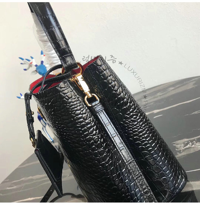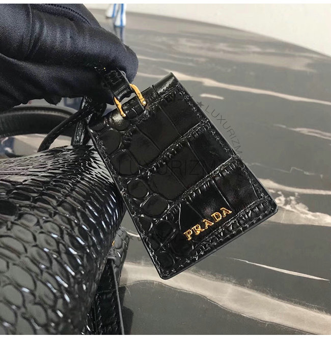 [스페셜오더]PRADA-1BA212 프라다 블랙 악어무늬 가죽 두블레 토트백