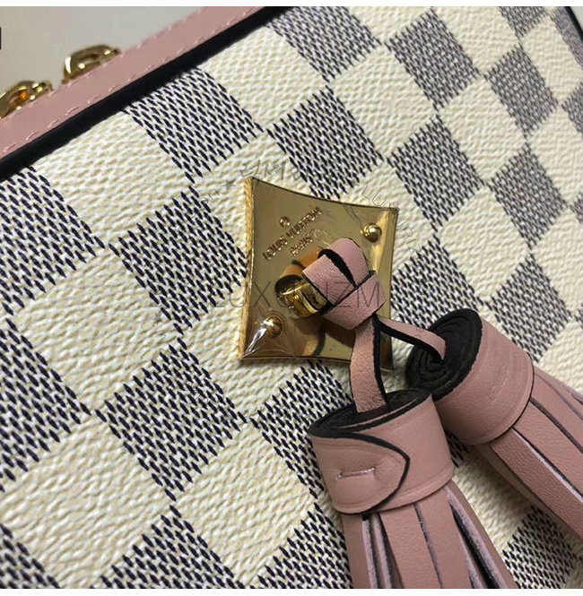 다미에 아주르 캔버스와 핑크 컬러 가죽 트리밍이