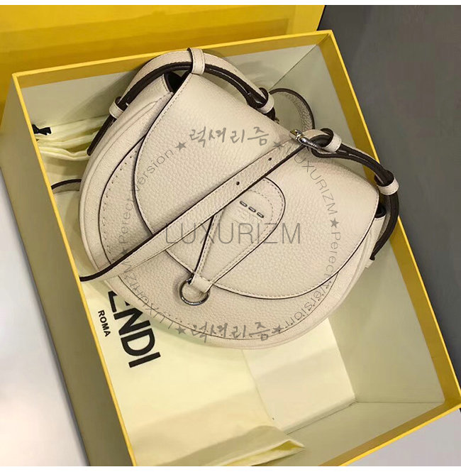 [스페셜오더]FENDI-8BT304 펜디 화이트 로만 가죽 라운드 플랩 새들백