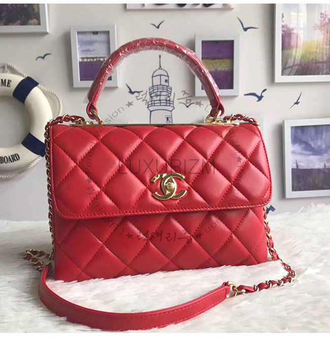 [스페셜오더]CHANEL-A92236 샤넬 레드 골드 톤 메탈 스몰 탑 핸들 플랩백
