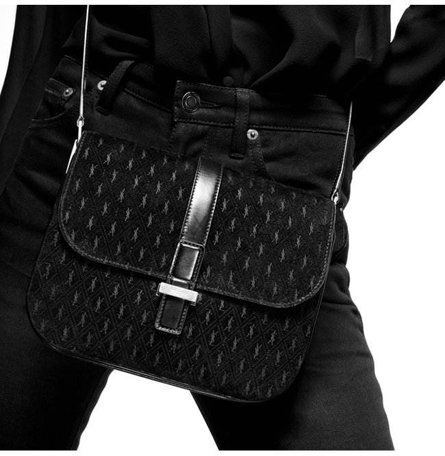 [스페셜오더]SAINT LAURENT-568604 생 로랑 블랙 스웨이드 송아지 가죽 모노그램 사첼백