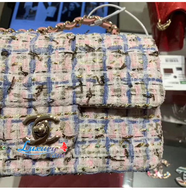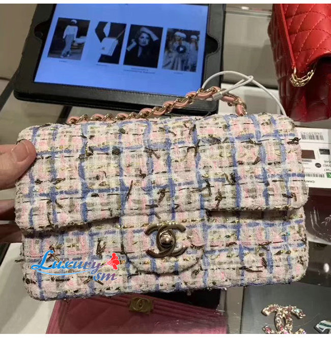 [스페셜오더]CHANEL-A69900 샤넬 핑크 트위드 골드메탈 미니 플랩백