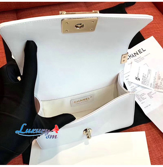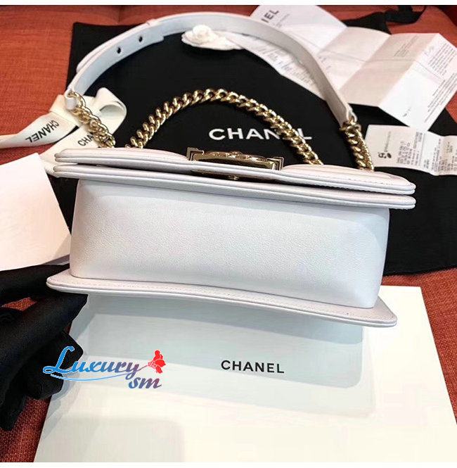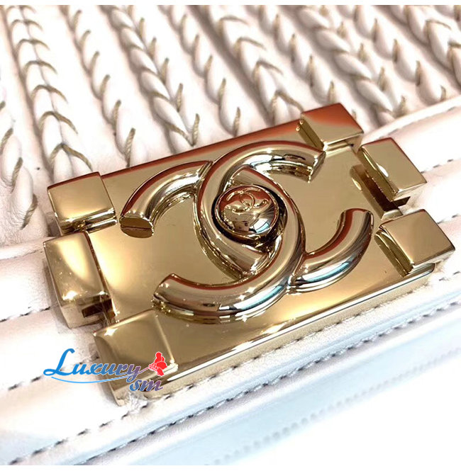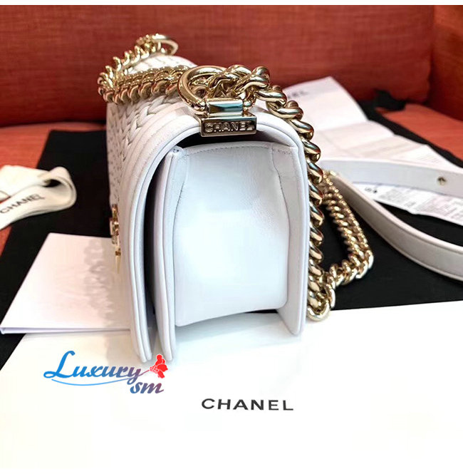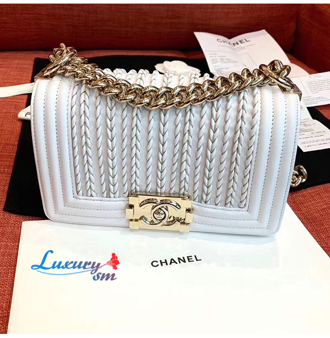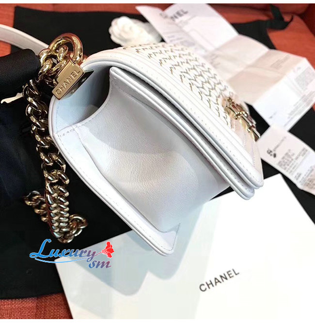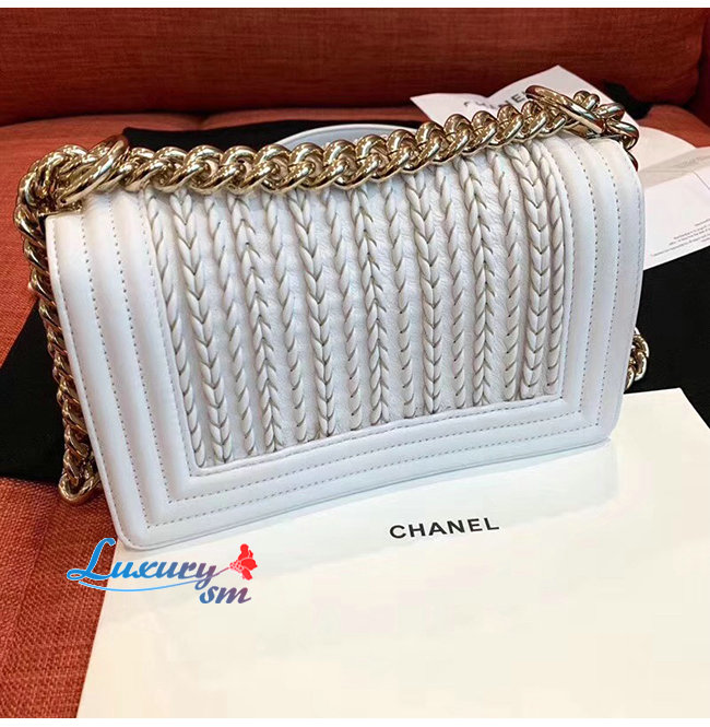 [스페셜오더]CHANEL-A67085 샤넬 화이트 카프스킨 브레이드 골드메탈 보이 샤넬 스몰 플랩백