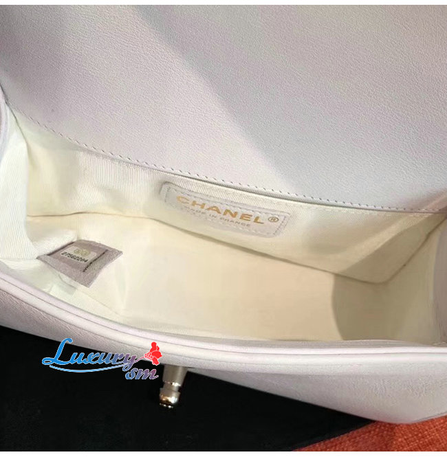 [스페셜오더]CHANEL-A67085 샤넬 화이트 자수 장식 카프스킨 골드메탈 보이 샤넬 스몰 플랩백