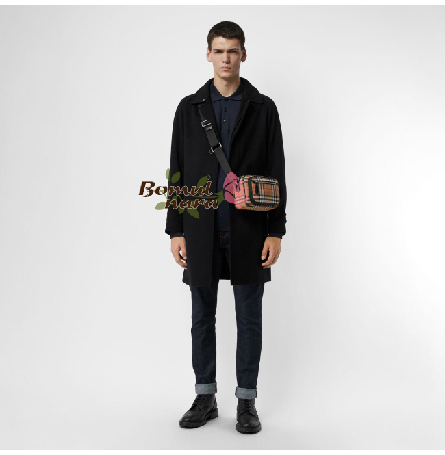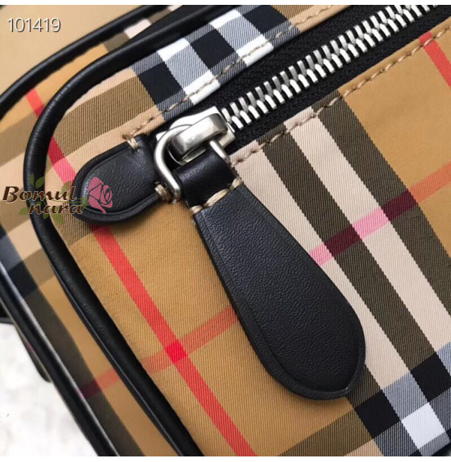 버버리 빈티지 체크패턴과 스티치디테일의 가죽 트리밍이