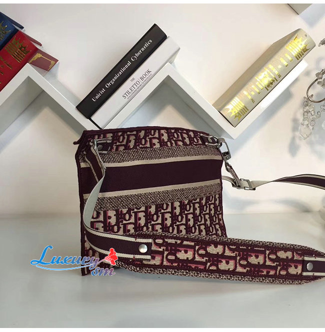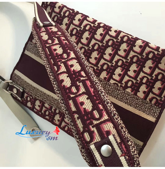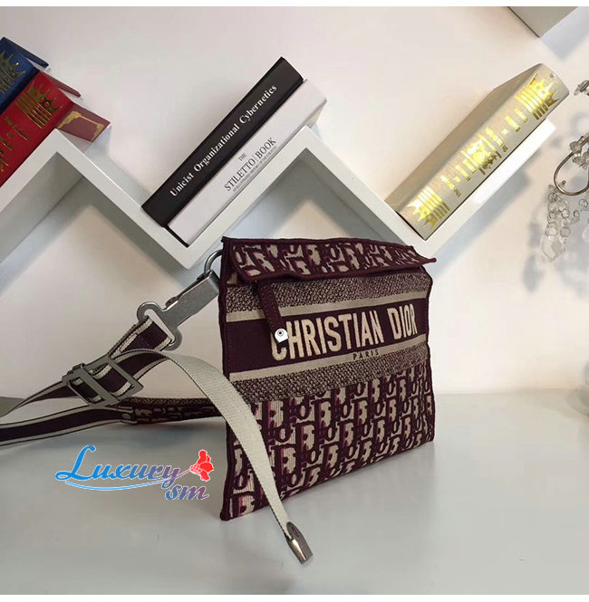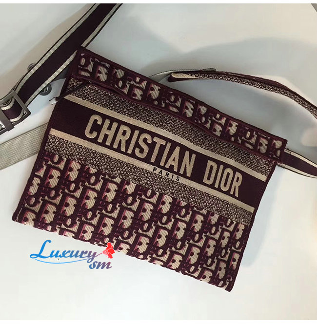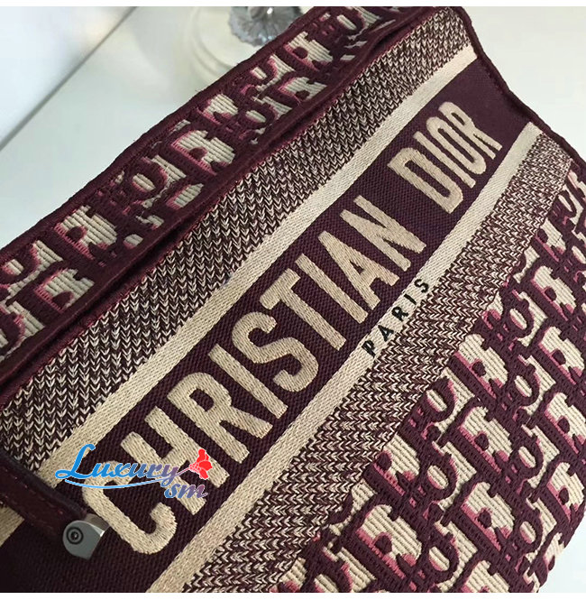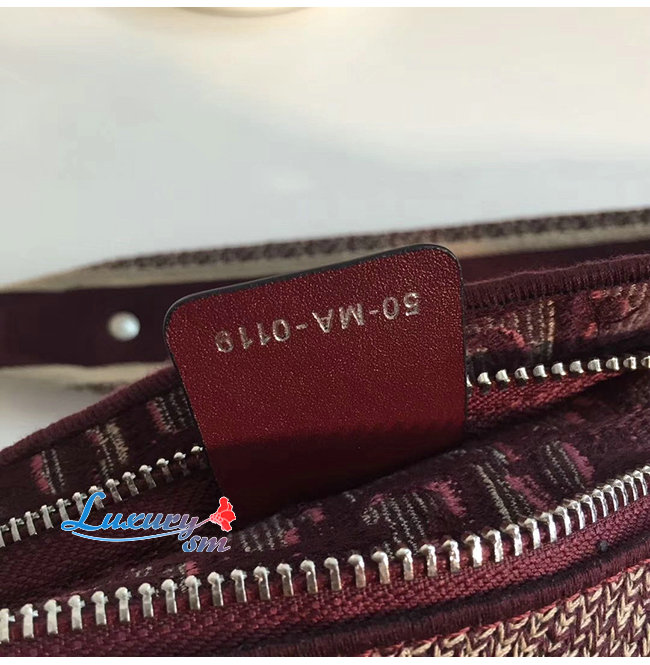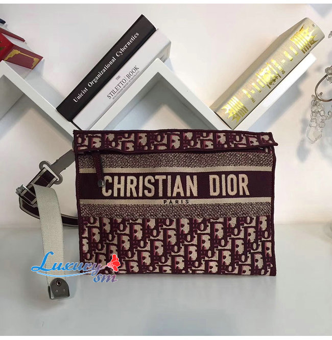 DIOR-M1292 디올 버건디 자수 장식 패브릭 클러치백