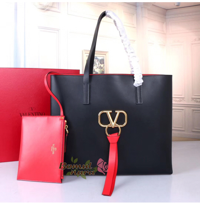[스페셜오더]VALENTINO-RW0B0D90 발렌티노 가라바니 블랙 라지 E/W V링 쇼퍼백